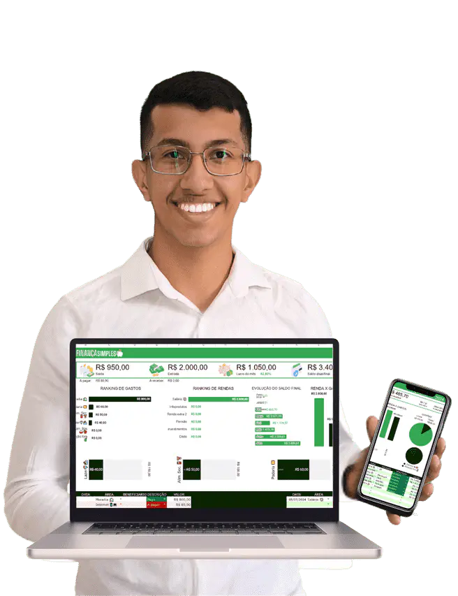 A Planilha Finança Simples foi criada por Helder, empresário e especialista em automação de planilhas. Nascido no Mato Grosso do Sul, ele se aprofundou em organização financeira através de diversos cursos e anos de dedicação.
